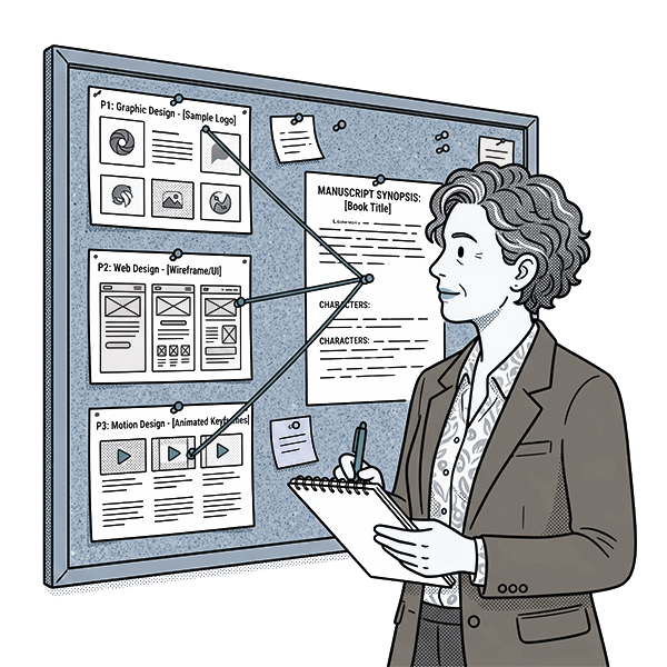 The manuscript is reviewed at the proper stage. Title information and positioning materials inform direction. Comparable covers and category expectations shape the work. Multiple concepts are explored. Revisions are collaborative, but controlled. Final files are prepared for the formats the book actually needs.