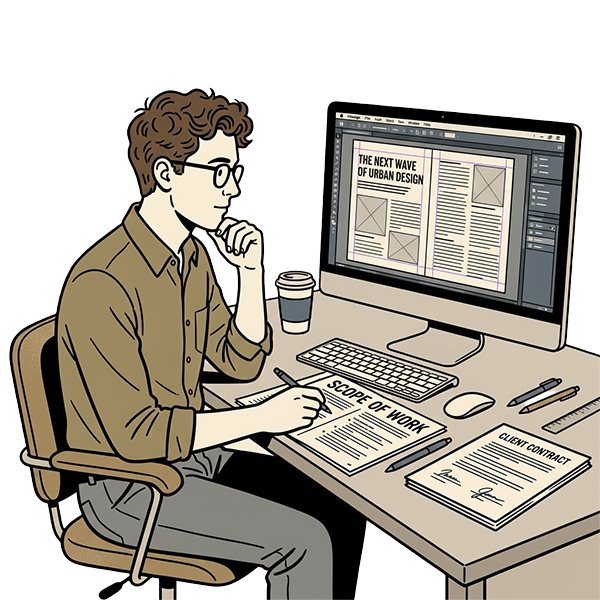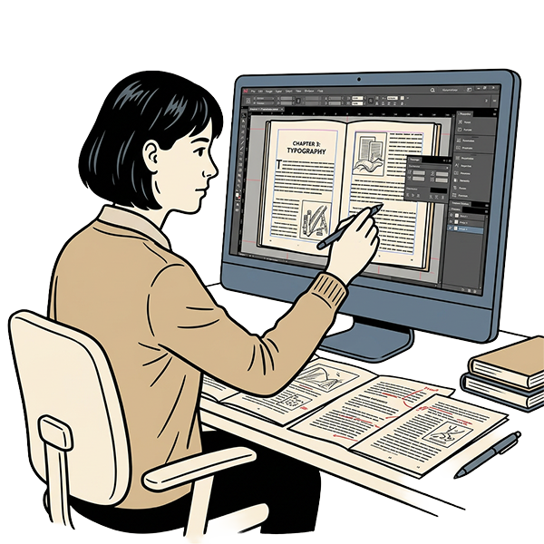 Our interiors are developed in Adobe InDesign and prepared for proofing, printing, and distribution—not improvised in Word or pushed through automated workflows.