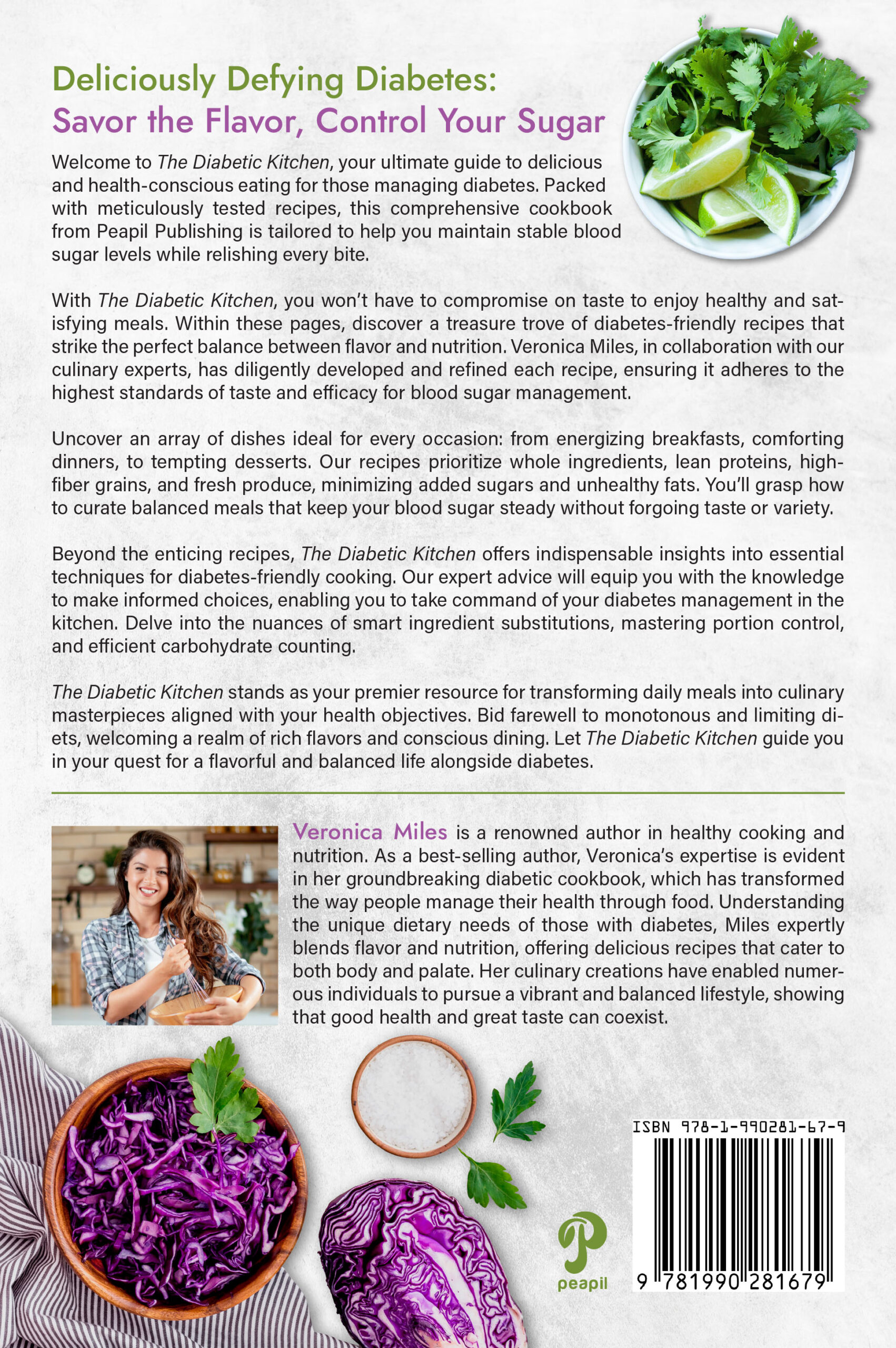 In The Diabetic Kitchen: Healthy and Tasty Recipes to Keep Your Blood Sugar in Check, embark on a culinary journey that combines flavor and mindful nutrition to empower individuals with diabetes. This comprehensive cookbook features a diverse collection of delicious recipes meticulously crafted to help maintain stable blood sugar levels. From breakfast to dinner, and everything in between, discover an array of creative, easy-to-follow recipes that promote both health and satisfaction—with The Diabetic Kitchen, managing diabetes never tasted so good. Elevate your culinary repertoire and take charge of your health, one mouthwatering dish at a time.